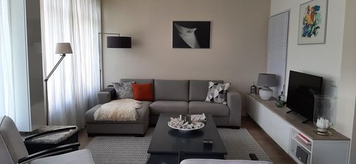 WOONKAMER; Ruime woonkamer (ca. 35m2) met veel lichtinval en toegang tot het zonnige balkon(ca. 4m2) welke op het zuidwesten is gelegen en een ruim uitzicht biedt, hetgeen komt door de ligging van dit appartement, voorzien van elektrische bedienbare zonneschermen. De voormalige eetkamer/werkkamer is doorgebroken en betrokken bij de woonkamer, waardoor men een ruime gezellige living heeft gekregen. Geheel voorzien van strakke radiatoren onder de raampartijen.